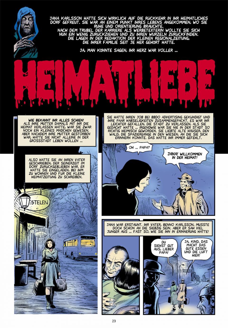 HORRORSCHOCKER #80 führt uns erneut in die düsteren Gefilde der Unterwelt ... dort lauert der fürchterliche Seelenstehler und bringt den ewigen Tod! Außerdem präsentiert der Fährmann noch zwei weitere Geschichten: Der freundliche Mitarbeiter der Stadtwerke Mannsbach sorgt für Ordnung und Sauberkeit - wo er wirkt, ist es vorbei mit Himmlischer Ruhe! Heimatliebe ist es, die Jana Karlsson in ihren Geburtsort zurückkehren lässt. Doch es ist alles so anders als früher ...