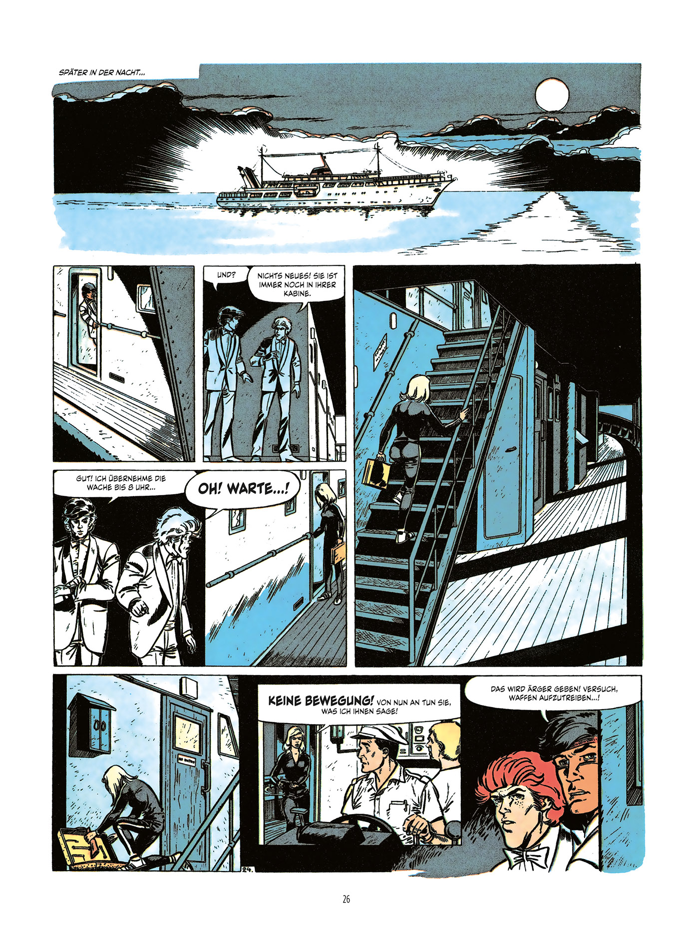 In diesem Band sind die albumlangen Abenteuer Die blaue Venus, Der dreizehnte Buchstabe und der Zweiteiler Das portugiesische Goldschiff und Die Augen des Rudergängers enthalten, in denen sich Franka nach Ermittlungen in der Kunstszene zur Erledigung eines gefährlichen Auftrags nach Berlin aufmacht und in Portugal einem attraktiven Dieb auf die Schliche kommt. Abgerundet wird dieser vierte Teil der Franka-Gesamtausgabe von einem umfassenden, reich bebilderten redaktionellen Teil sowie drei Kurzgschichten.