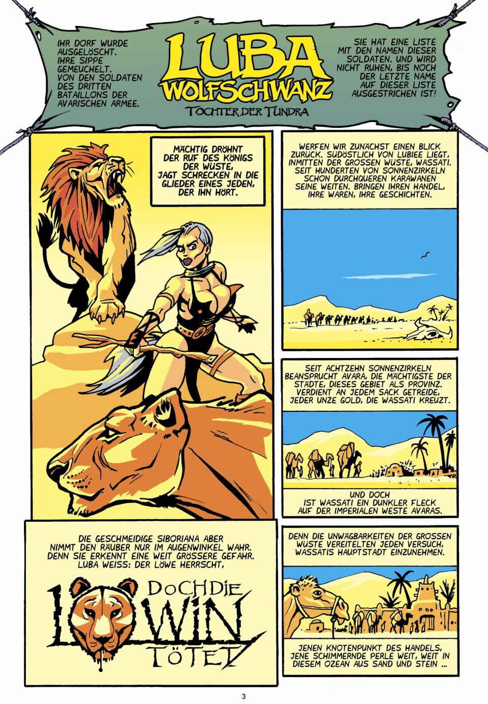 Die Wolfschwänzin macht auf ihrer Reise durch die hitzeflimmernden Weiten Halt in der Oasenstadt Missouwe Wassati, der von reichen Karawanen fett gemästeten Perle der Wüste. Hier herrscht der mächtige Mansa, aber auch Avara hat seine Soldaten in einer kleinen Garnision postiert ... das bedeutet also doppelten Ärger ...
