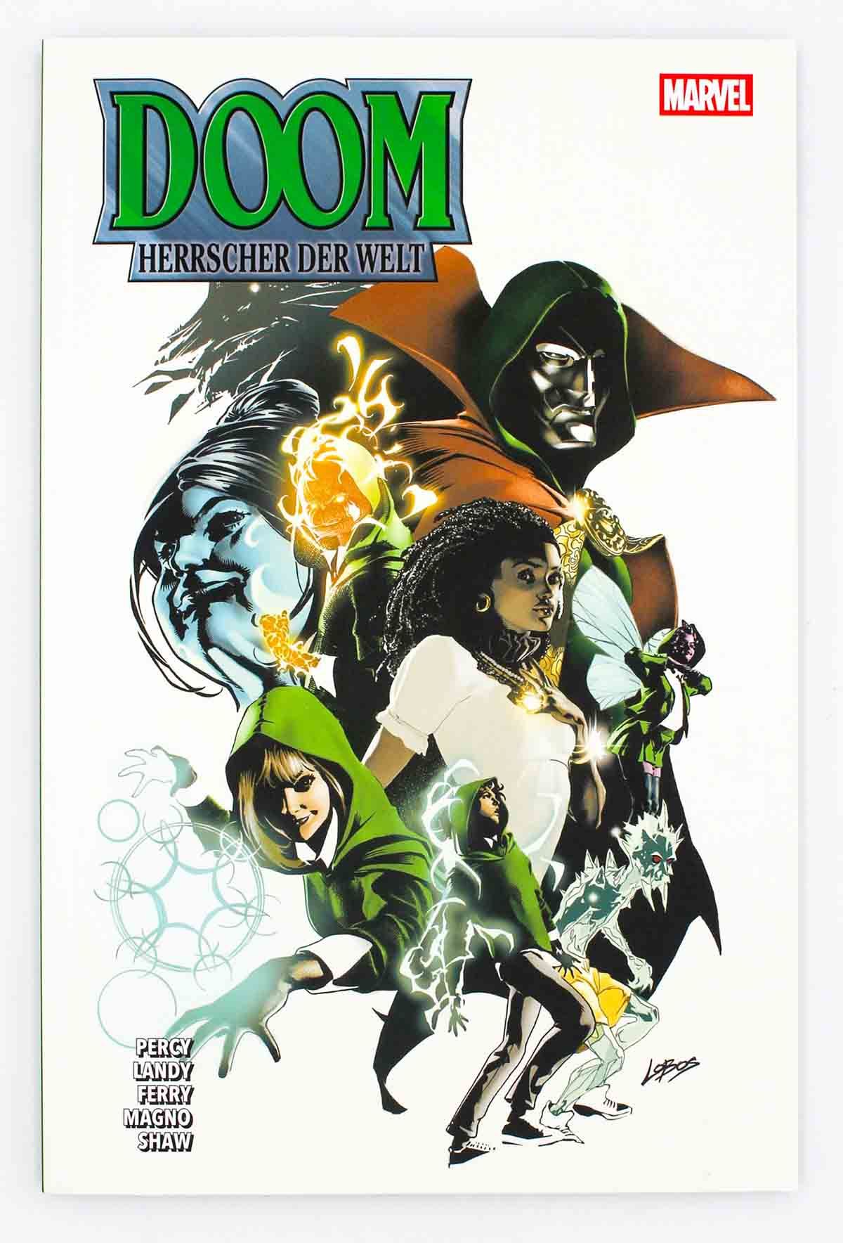 AUF ERDEN UND IM HIMMEL Der Oberste Zauberer Victor von Doom herrscht über die Welt. Während Dr. Strange bei Thor in Asgard Zuflucht sucht, werden die magische Schule Strange Academy und das südkoreanische Heldenteam Tiger Division vom Imperator übernommen. Red Hulk ist sogar in Latveria in einem Thinktank von Doom gefangen. Unterdessen sagen Bucky Barnes, Black Widow und Songbird von den Thunderbolts Doom den Kampf an.