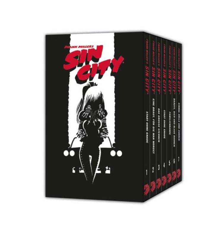 »Im kompromisslos düsteren und zynischen Comic-Meisterwerk Sin City des US-Comicautors, -zeichners und Regisseurs Frank Miller geht es sündig, dreckig und brutal zu. Diese optische wie inhaltliche Härte zeigt sich bei der edlen neuauflage schon an den coolen Cover-Motiven, denen nun selbst der blutrote und damit einzig (warm)farbige Original-Titelschriftzug fehlt: extrem konsequent, konsequent extrem.«