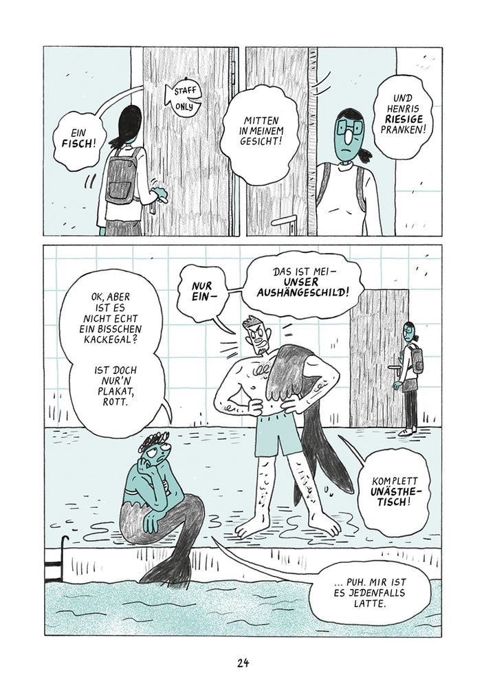 Inmitten einer Meerjungfrauenshow erzählt die Hamburger Zeichnerin Wiebke Bolduan von Autor:innenschaft, Selbstakzeptanz und zwischenmenschlichen Beziehungen. Die darin auftauchenden Figuren sind voller Tiefgang und Witz, die berührenden Dialoge werfen nicht zuletzt die Frage auf: Wie kann man sich selbst mit allen Schwächen akzeptieren? Und... Wie bin ich denn?