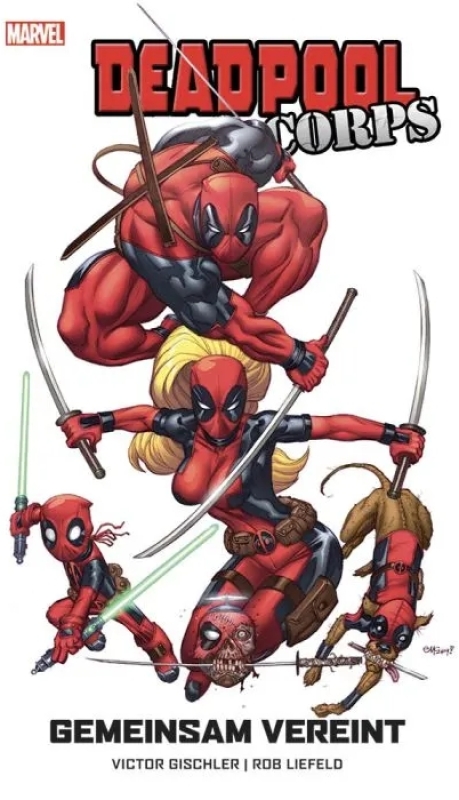 Marvels Multiversum schwebt in größter Gefahr. Und nur ein Held, der verrückt und verwegen genug ist, dem Tod furchtlos ins Auge zu blicken, kann es retten. Klingt nach einem Job für Deadpool. Doch diese Aufgabe kann Wade nicht alleine stemmen. Also holt er sich Hilfe, die genauso verrückt und verwegen ist wie er. Vorhang auf für das Deadpool Corps! Erlebt die Geburt des wichtigsten und besten Superhelden-Teams aller Zeiten, in einer Story, die das Marvel-Universum in hellen Aufruhr versetzt hat. Was das alles mit einem gewissen MCUBlockbuster zu tun hat? Na was wohl, ihr Flitzpiepen?!