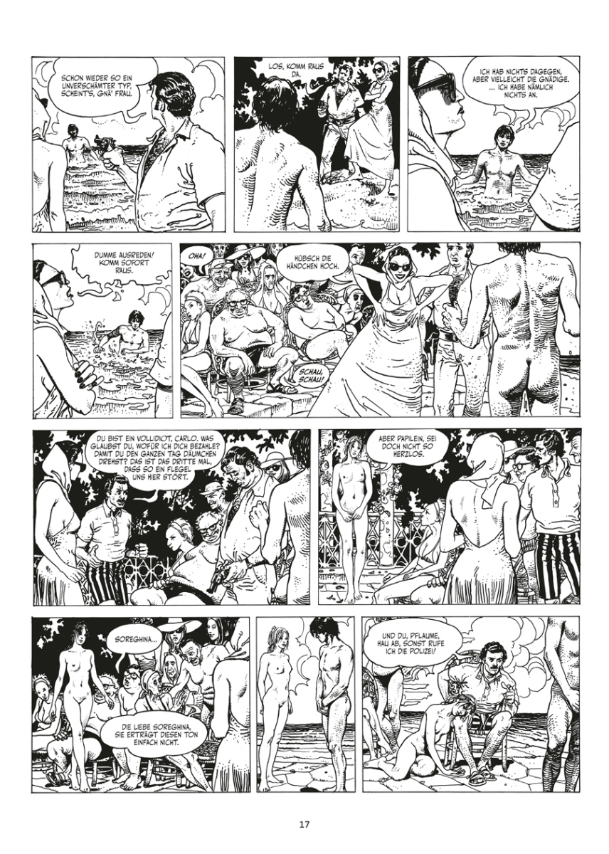 Inspiriert von Hugo Pratt, mit Bezügen auf Kunstgeschichte, Mythologie und nicht zuletzt auf seine eigenen Reisen, versetzt Milo Manara sein Alter Ego Giuseppe Bergmann in eine Welt des Traumhaften, Träumerischen, Traumartigen. Von den vexierenden Windungen der Handlung über die exotischen Schauplätze bis hin zu den wunderschönen, oft spärlich bekleideten Wegbegleiterinnen seines Helden ist »Giuseppe Bergmann« ein schwelgerisches Abenteuer, das Manara auf dem Höhepunkt seines Schaffens kreierte. In dieser Gesamtausgabe finden sich erstmals all diese Abenteuer aus 25 Jahren, komplett durchgesehen und um etliche Seiten Bonusmaterial ergänzt.