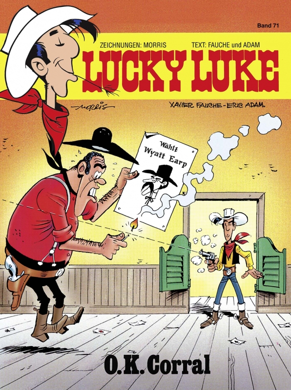 Im Juli 2001 stirbt der geniale Schöpfer von Lucky Luke. Trotz aller Trauer bleibt ein Trost: Noch zu Lebzeiten verfügte Morris testamentarisch, dass es nach ihm weitere Folgen geben soll mit „dem Mann, der schneller zieht als sein Schatten“.
